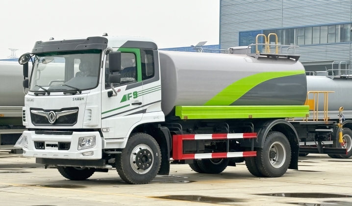 【东风F9/12方吨绿化洒水车选装配置】20米绿化卷盘或药泵,气动阀控制喷洒球阀,低水位报警,LED大号箭头灯,罐内防腐,罐体保温,不锈钢管道、球阀、洒水泵、洒水炮、罐体。