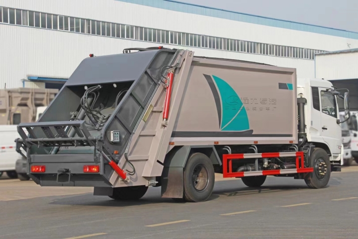 东风天锦大型18立方压缩垃圾车采用机电液一体化技术,借助机、电、液联合自动控制系统,通过车厢、填装器和推铲等专用装置,实现垃圾倒入、压碎或压扁、强力装填,把垃圾挤入车厢并压实和推卸。其主要特点是垃圾收集方式简便、高效、具有自动反复压缩及蠕动压缩功能,压缩比高,装载质量大,作业自动化,动力性,环保性好,整车利用率高。