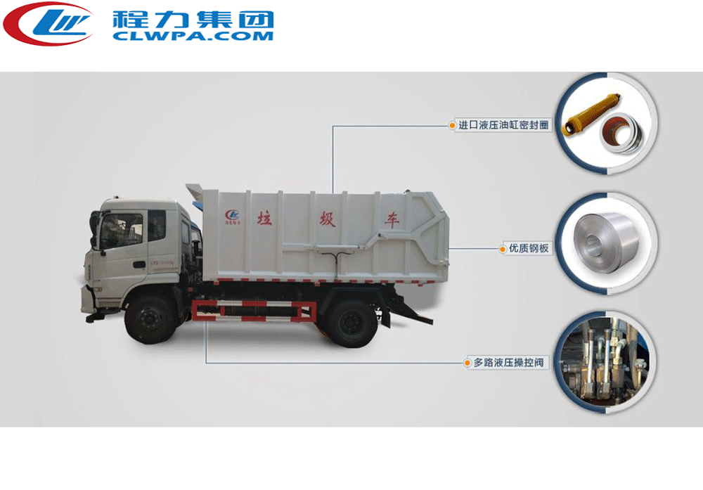 该车用于城镇垃圾压缩站内的垃圾转运、卸料作业。操作系统是由液压控制系统来完成的,控制方式可以为手动或电控。该垃圾车的收运方式是目前国内广泛采用的垃圾压缩站垃圾转运方式,可以实现一车多站,大大降低了配备成本和空间等等。车辆的箱体采用优质碳钢板全密封焊接结构,具有强度高,重量轻,不产生二次污染等优点。
