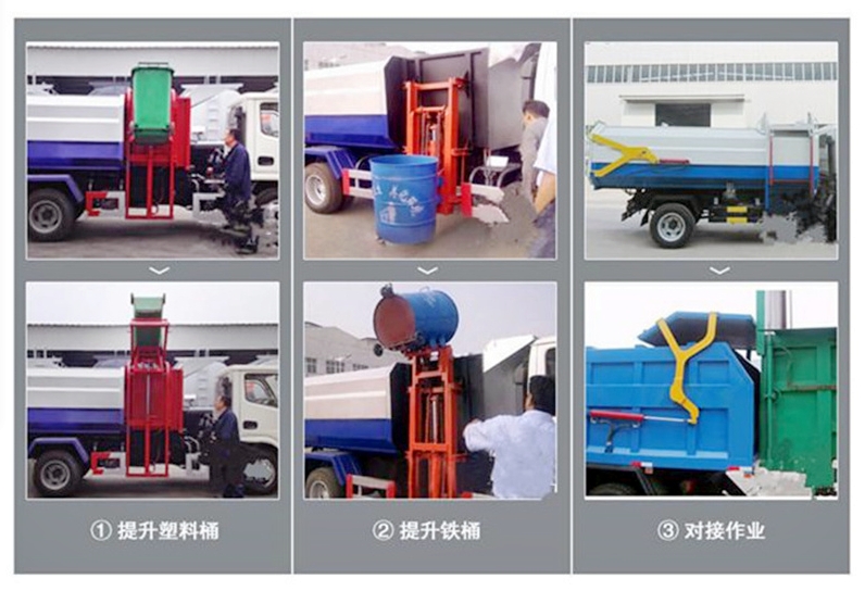 挂桶式垃圾车特点:能实现一台车与多个垃圾桶联合作业,循环运输,充分提高了车辆的运输能力,特别适用于短途运输,如环卫部门对城镇垃圾的清理、运输等。 适用于全国通用标准的垃圾桶:铁桶、塑料桶;方桶、圆桶。