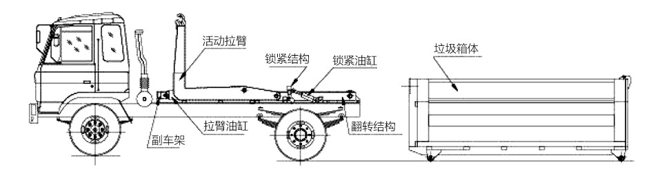勾臂垃圾车又称拉臂式垃圾车、钩臂式垃圾车、套臂垃圾车、车厢可卸式垃圾车等,是垃圾车的一种,主要用于收集、运输生活垃圾,各种垃圾、城市淤泥的专用车辆。可配装载不同规格的标准垃圾箱、移动压缩垃圾站,广泛应用在市政环卫、物业管理、工厂、工矿、村庄、小区等各种场所的垃圾收集、运载。